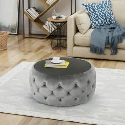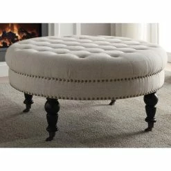 Budget 🛒 Linon Home Decor Products Isabelle Natural Round Tufted Ottoman, 34.63W X 34.63D X 18.13H ⭐