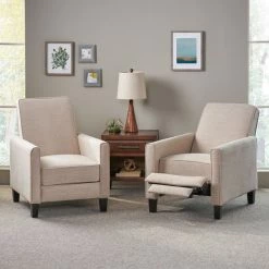 Buy 🥰 GDFStudio GDF Studio Macedonia Mid-Century Modern Button Tufted Fabric Recliner, Gray Fabric 🧨