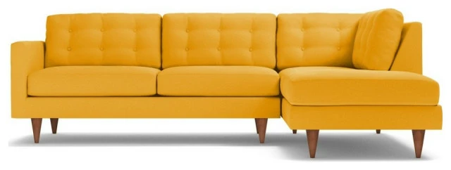 The Logan 2-Piece Sectional Sofa is luxurious comfort at its very best. It evokes the style of old Hollywood glamour with its button-tufted back cushions and tapered wooden legs. Perfect for entertaining guests or stretching out for a movie marathon, this versatile piece is both stylish and cozy.