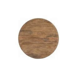 Narrow wood slats wrap up the sides of this gently curved round cocktail table. The top is solid wood and the entire table is finished in a new tobacco wash we developed specifically for this season.