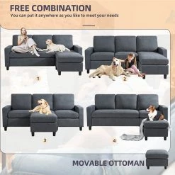- Versatile Sectional Sofa: Sectional sofa with an extra wide chaise lounge for maximum comfort, When friends come by, you can place the ottoman on either side of the sofa at random