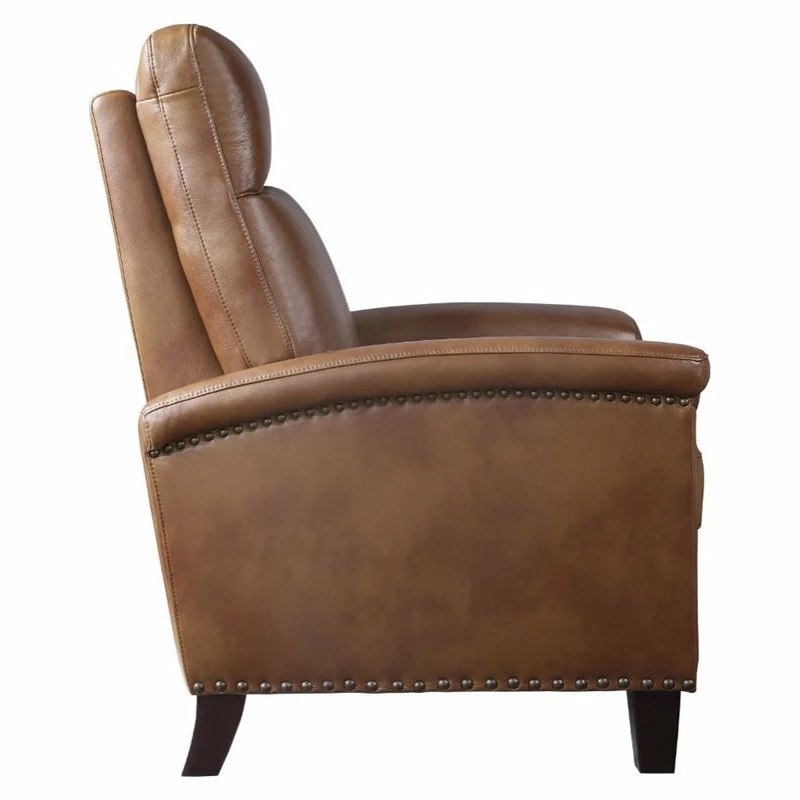 Created for comfort and designed with versatile placement in mind, the Weiser Collection will be a welcome addition to your modern living space. The push back recliner features plush pillowtop arms and, for your ultimate comfort, eases into the prone position with motion that is initiated by your push. The chair is offered in brown breathable faux leather.