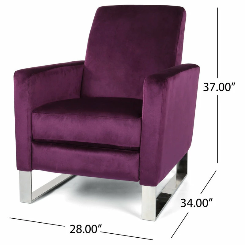 MODERN GLAM: Mix modern with glam for an impressive recliner chair that will instantly transform your home decor. With a gorgeous velvety texture accented with silver legs, this sleek piece pairs clean lines and fresh colors for a gorgeous addition to any room.