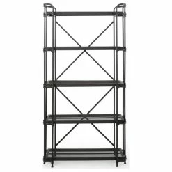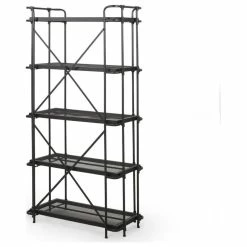 MESH SHELVING: Our bookshelf showcases five shelves that are made of iron mesh, creating an extremely sturdy structure. This also brings a very industrial look to any home.