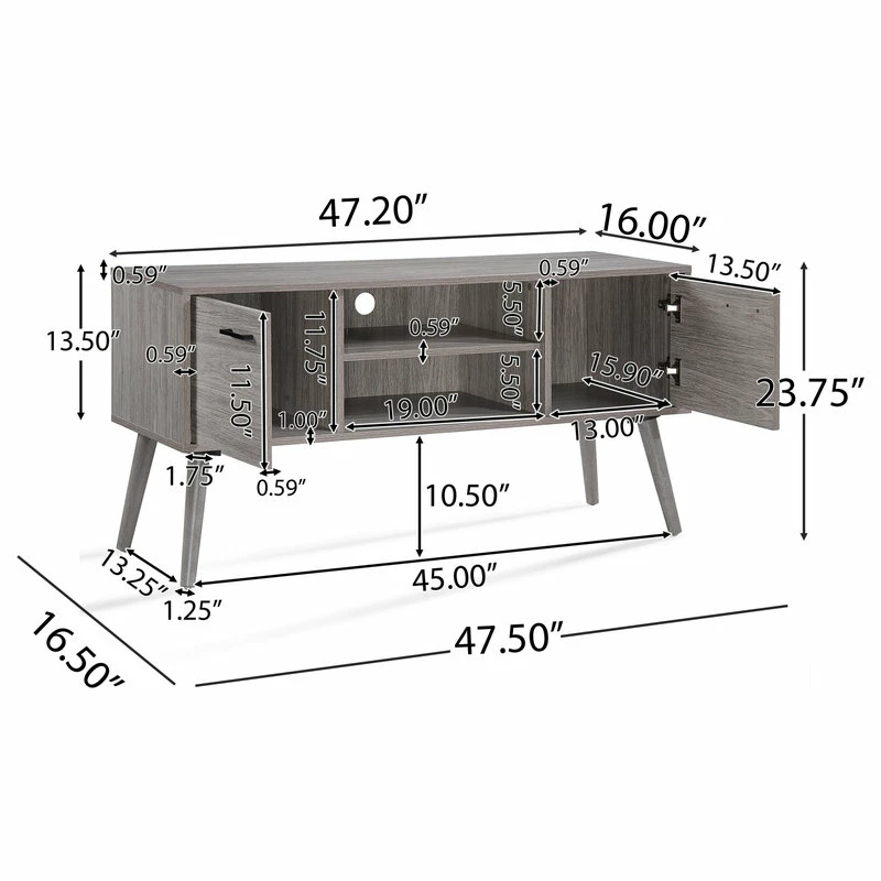 - Dimensions: 16.50 inches deep x 47.50 inches wide x 23.75 inches high