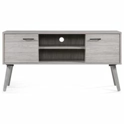 This media center balances rustic and modern looks to complete your living room. Its sleek profile offers space to conceal all your players and devices, offering a broad surface for your television. This entertainment center can also function as a side console. This is a purchase you’ll treasure for years to come.