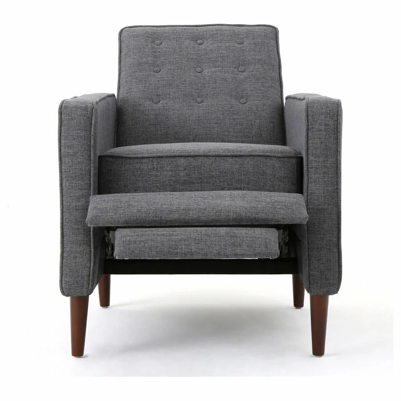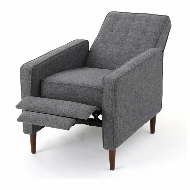Looking for a place to prop up your feet and relax after a long day of work? Our mid-century modern recliners are a wonderful addition to any living room decor. Featuring clean lines and a smooth finish, these recliners offer you incredible comfort as well as sleek style. This is finished with lovely tapered legs for a sturdy structure and outstanding design. Complete with a beautifully button-tufted backrest and smooth upholstery for maximum comfort, these recliners will easily turn into your favorite place to unwind.