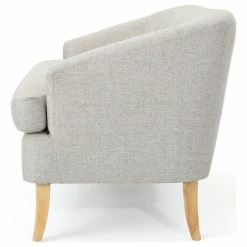 This uniquely-shaped love seat blends elegant design with the utmost in comfort. Perfect for those looking to add seating to space without committing to a big bulky couch, this makes for an intimate and relaxing place to read a book or watch TV. Upholstered with the highest quality fabric, and set atop beautiful birch wood legs, this will be a favored addition to your home.