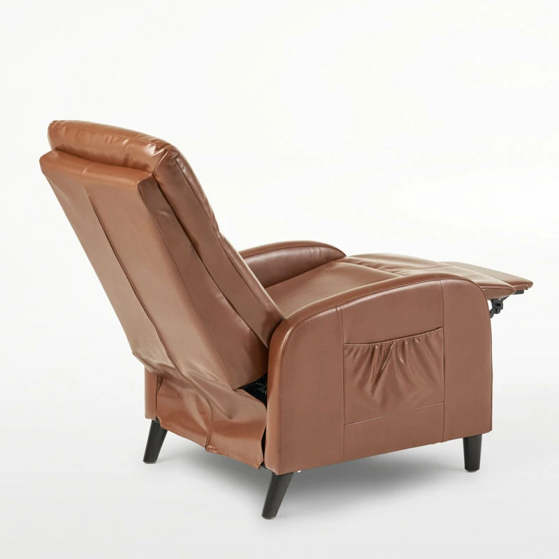 The Trenton Recliner is a perfect piece for any room in your home. This recliner exudes luxury and comfort when both upright and in the reclining position. With its smooth bonded leather and well padded seat and backrest, the Trenton gives you both comfort and style.