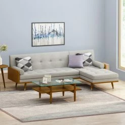 GOLD TIPPED RUBBERWOOD LEGS: These iconic splayed legs are finished with gold tips, providing the final touch to this mid-century modern sectional. Made from rubberwood, our environmentally-friendly wood not only offers plenty of durability, but it also gives this piece a beautiful natural-grain look. Combined with a gorgeous finish, this wood will truly stand out in any room.