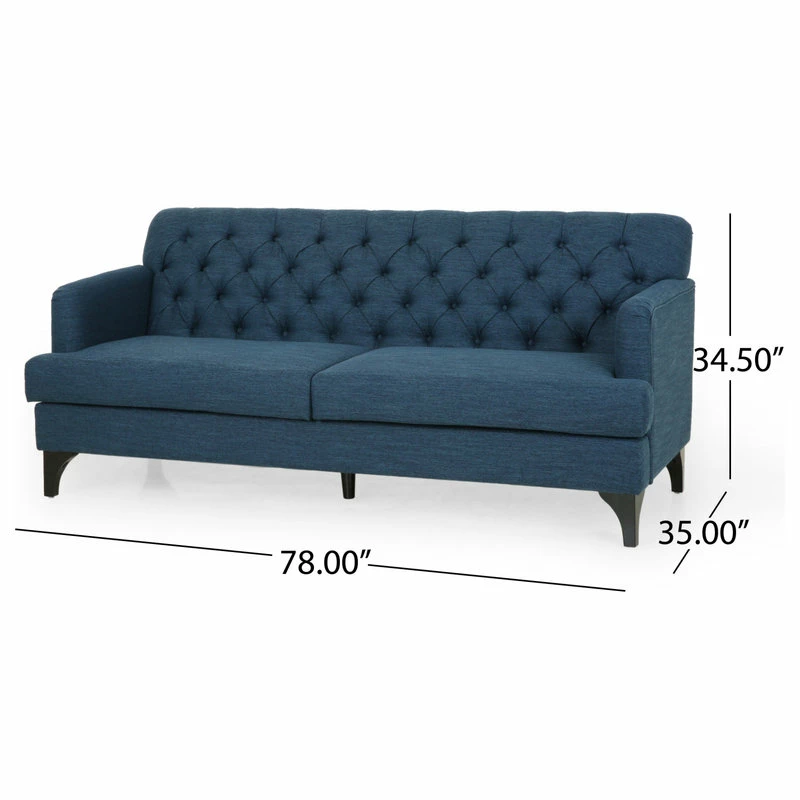 Looking for a classic yet modern touch to spruce up your living room space? Our charming sofa is here to fill that gaping void. With a deep button-tufted backrest and beautiful diamond stitching, our three-seater sofa brings your interior space the sophisticated and sleek atmosphere that you never knew you needed. This contemporary masterpiece is finished with lovely rounded arms, smooth T-shaped birch wood legs, and deep seating for a delightfully cozy place to curl up at home with your family.