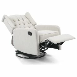 LEVER MECHANISM AND SWIVEL FUNCTION: With a wonderfully relaxing and convenient swivel function, our recliner offers the ultimate comfort. Ideal for nurseries and living rooms, this recliner will quickly become your new favorite seat in the house. This manual recliner uses a convenient lever to position the chair into its reclining state.