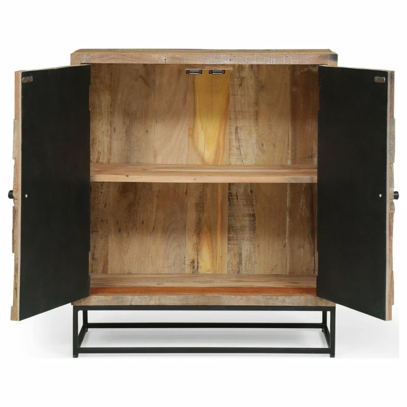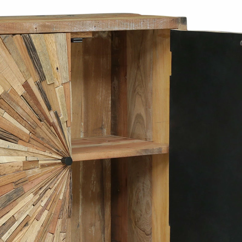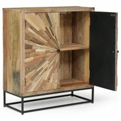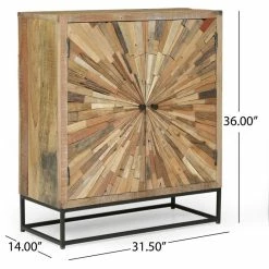 Fresh looks and a dash of modern industrial flair is the perfect finishing touch to your interior space. Featuring an eco-friendly wood structure for a one-of-a-kind design, our two-door cabinet brings a sophisticated yet boho touch to your home, complemented by a handcrafted finish for an antique look. This cabinet is completed with a stunning sunburst design and plenty of storage space, giving you ample room and style to organize your items. Blending seamlessly with your existing decor, this stand will bring out the best of your interior space.