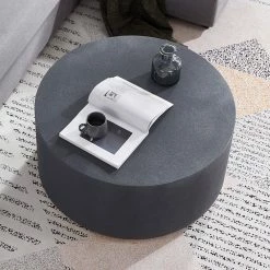 Coffee tables are a living room essential, perfect for keeping your snacks close and design books displayed. So why settle for a traditional design when you can mix it up a little? This round design showcases a clean-lined round silhouette, founded atop a metal base in a golden hue. A thick, circular cement-like top in gray hue adds industrial appeal, perfect for placing in contemporary abodes.