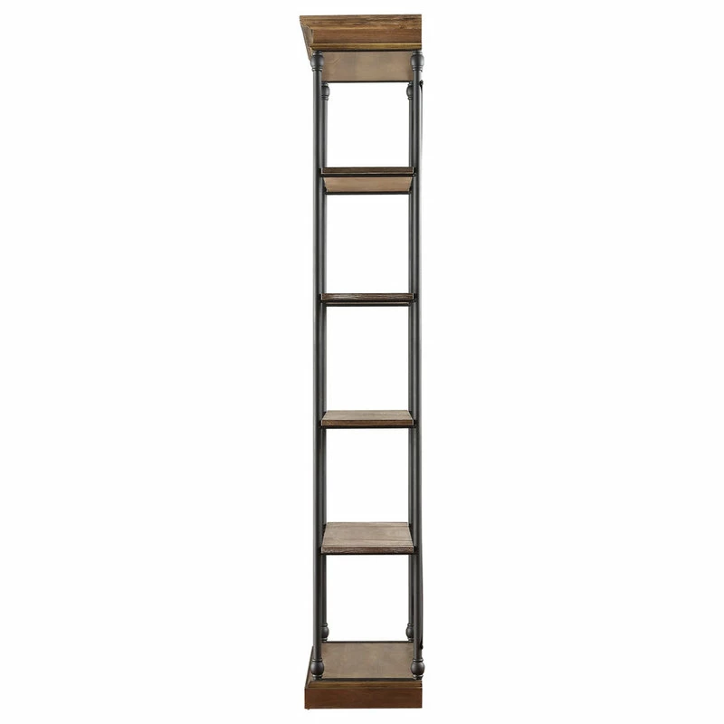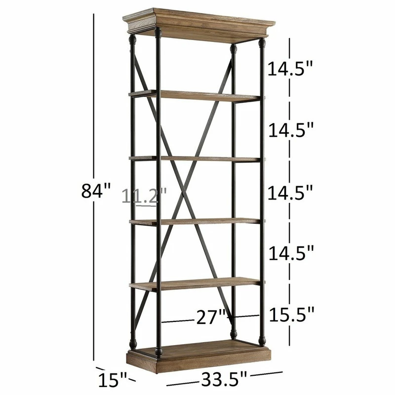- 58โ wide bookcase measures 58″W x 15″D x 84″H