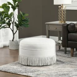 The Yolanda collection by Jennifer Taylor Home is the perfect addition to any living space looking to add a bit of a traditional flair. The fabric selected for the collection features Polyester and Rayon blends and engineered for long life. Our wood frames are made from kiln dried Birchwood which provides exceptional support and stability. This chic and traditional jacquard design is accented with hand-tufting, cords, and a fringe trims. The Yolanda is an ideal choice for the entryway, hallway or living areas. The design, construction and overall functionality are certain to grace your interior with a bit more charm. This ottoman brings class and lounging comfort to any room in the home, whether it’s used as a footrest or additional seating for guests. We offer a unique versatility in design and make use of a variety of trend inspired color palettes and textures. Our products bring new life to the classic American home.