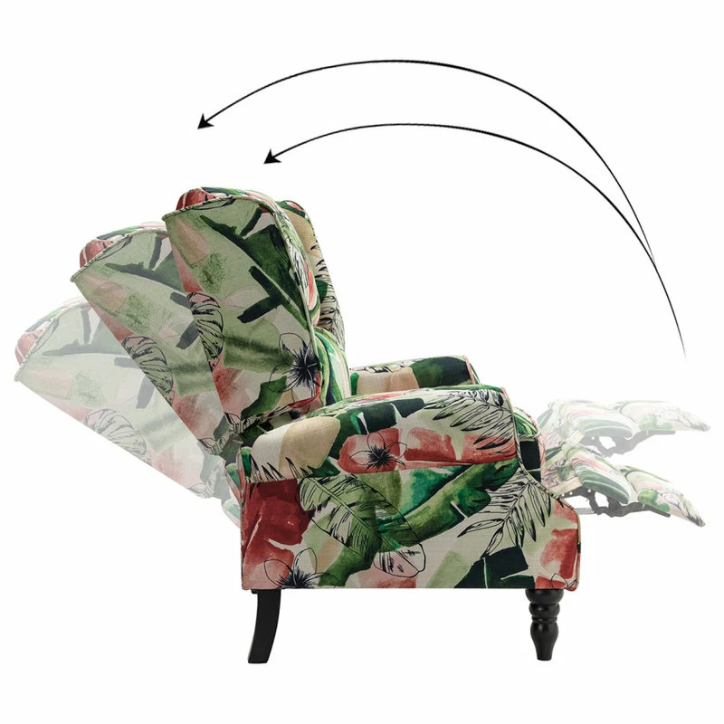 When it comes to elevating your living room look or accenting the master suite, this modern wingback recliner is the perfect spot to unwind. This chair with two cushions padded backrest and a foam-filled frame exudes ease and comfort when both upright and in the reclining position, while the built-in pocket spring and sinuous spring provide excellent support capacity. Crafted from solid and manufactured wood while offering several different fabric choices, this textured manual-adjusted recliner shows a modern appearance for simple yet fashionable charm in any living room. With optional patterns and creative colors that meet your demands, its retro-carved rubber legs bring you endless reverie. Simply recline the back with the hidden footrest, it helps to relax your joints after a long day of work, perfect for living room, media, and master bedrooms.