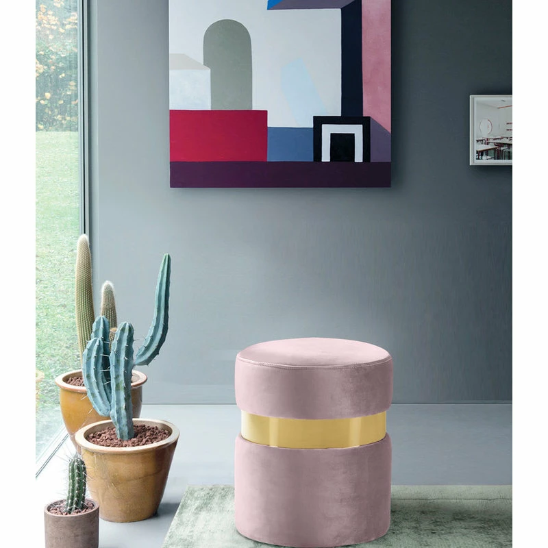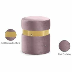 Coupon ✔️ Meridian Furniture Hailey Velvet Ottoman/Stool, Gold Band, Pink 🎁