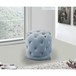 Bring brilliant color to life in your room with this Harper Sky Blue Velvet Ottoman/Stool. Jewel-toned upholstery in an eye-grabbing color makes this ottoman a standout in your space, and the deep button tufting adds a glamorous, Hollywood-inspired look. Place this ottoman near a chair in the living room or den to give yourself a posh spot to prop up your feet while you rest and unwind.