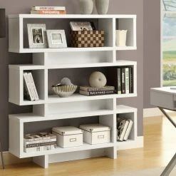 Add some pizzazz to your living space with this 55″ high hollow-core bookcase! This modern, rich white finish bookcase has ample room for displaying pictures, decorative pieces and even books. Both beautiful and versatile, this bookcase can be placed in the center of a room to seperate and provide more intimacy. Its sturdy structure and innovative features will definitely add visual appeal to any decor. The Feature Includes 3 Large open shelves with divided compartment, Modern design, Sturdy structure, Ample display room, . Don’t forget to bookmark our store and add us to your favorites