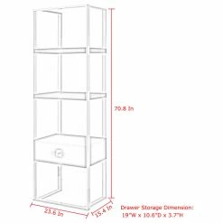 - PRODUCT DIMENSION – Overall: 23.6L x 15.4W x 70.8H. Drawer: 19W x 10.6D x 3.7H.