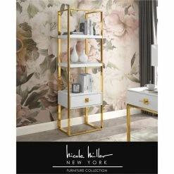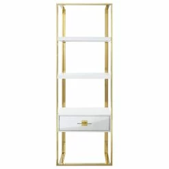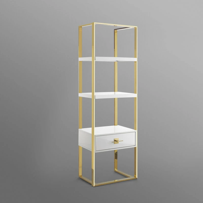 - ELEGANT DESIGN – This unique etagere bookcase/bookshelf with polished stainless steel frame and high gloss surface finish infuses an exquisite accent to your main furniture to create that modern cozy atmosphere and enhances the surrounding decor.