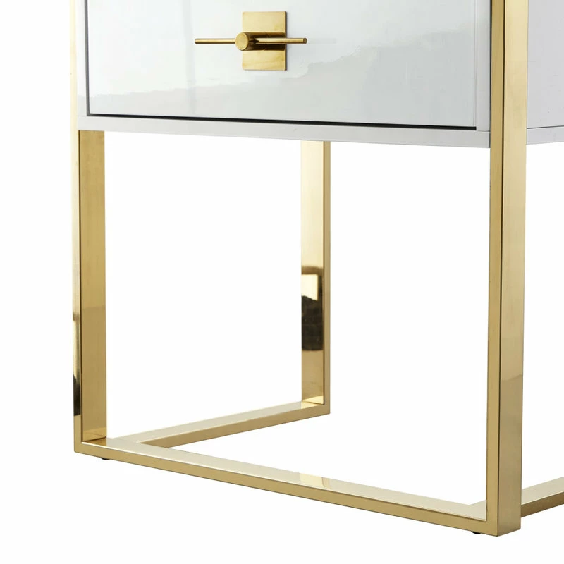 - ATTRIBUTES: 1 Drawer, 3 Shelves, High Gloss Lacquer Finish, Polished Stainless Steel Frame