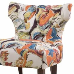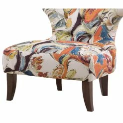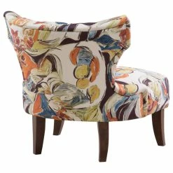 Complete your home decor with the modern charm of the Madison Park Erika Accent Chair. This armless accent chair features a low back and an attached cushion upholstered in a printed fabric, for a chic contemporary look. Solid wood legs complement the upholstery and provide a sturdy base. Place this accent chair in your living room to brighten your decor with an eye-catching modern flair. Leg assembly required.