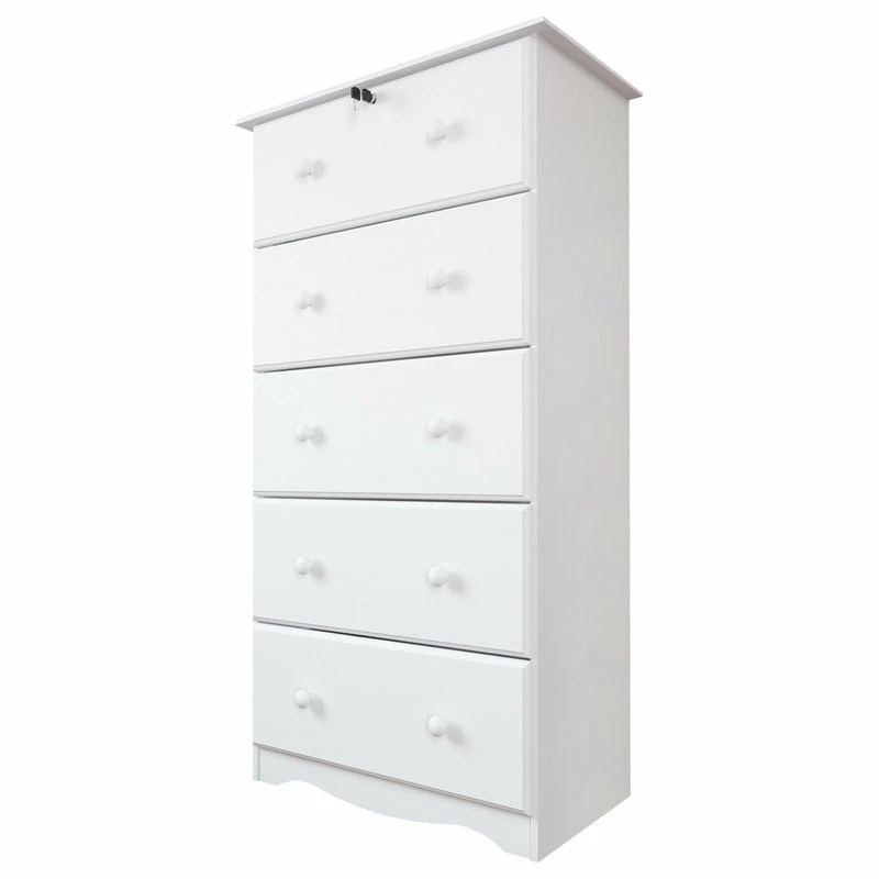 It’s a solid wood giant ‐ there is no other way to describe this 60 inch tall solid wood chest! Practically indispensable in small apartments and some housesβ it holds a ton of stuff on a small footprint. Very deep super jumbo drawers will tuck away a heap of your belongings! A locking top drawer will keep your private things private and other items away from the kids. Available in 5 popular finishes, it will match most interiors.