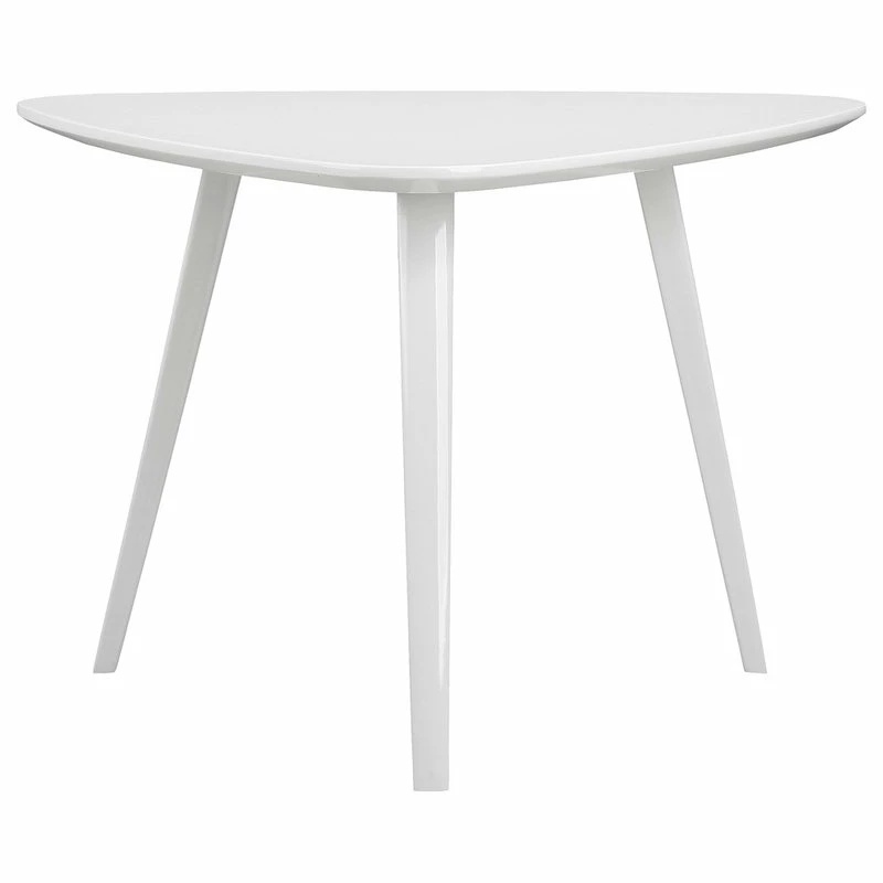 Retro modern accent table; top is high gloss lacquer; legs are white powder coated; great for any room;