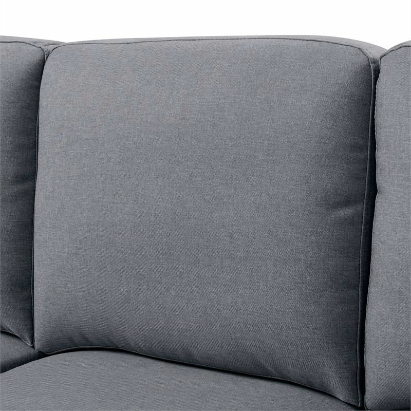 This sectional’s understated design makes it a versatile choice for a variety of styles. Subtle supremely comfortable upholstery and plush back cushions add a sumptuous feel to its classic image and otherwise clean-lined profile.