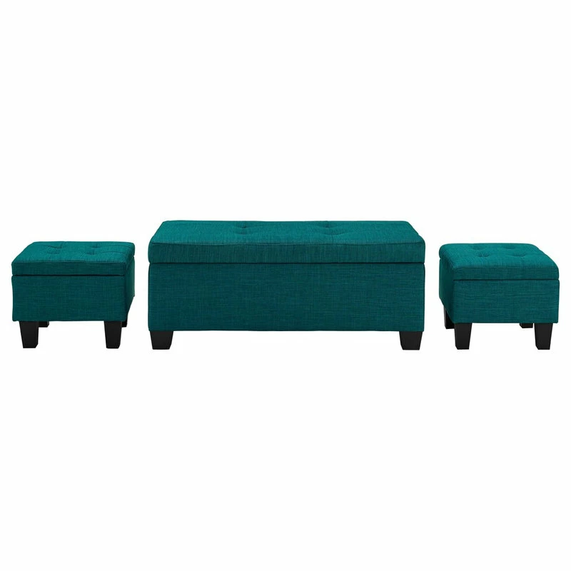 The stylish Everett 3-Piece Storage Ottoman Set provides handy storage while enhancing your modern design. Featuring a tufted bench with a full-size storage compartment and 2 smaller ottomans, your living room will have plenty of storage space and extra seating. The Everett 3-Piece Storage Ottoman Set pushes the boundaries of contemporary style with aesthetically pleasing function.