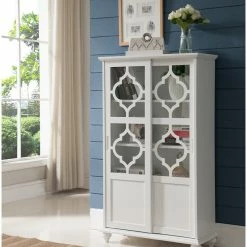 Accent your space and keep it organized with the stately Callum Wood Curio Bookcase. This wooden bookcase features two sliding glass doors, three shelves to display your favorite keepsakes and a white finish.