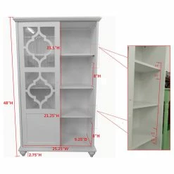 - The storage size above and below the fixed shelf: W 25″ x D 9″ x H 21.5″