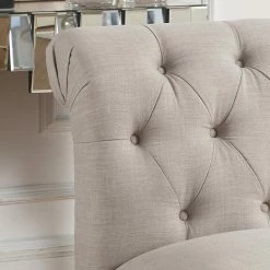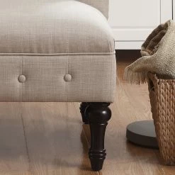Complete your contemporary living room with this collection. Upholstered in premium linen, this charming silhouette is elegant, easy to clean, sturdy, and easy to assemble. Designed with a slightly arch back and significant folding on chesterfield style top, this beautiful ensemble is made of complete solid wood construction and round turning dark espresso legs for stability and long-term durability. Applied with fire retardants, this lovely love seat is fire resistant, animal- friendly, and does not contain toxic chemicals. This beauty is luxurious in appearance and generously padded with medium firmness cushions. Liven up your home with this collection to provide a relaxing yet eye-catching addition to your family. Designed for an inviting conversation for all your guests and family, this is the set of furniture you have been looking for. Simply transform your living room with these statement pieces to add a touch of elegance to your home.