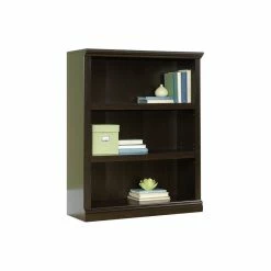 Stack, store, and display with this three-shelf bookcase from the Sauder Select collection. With two adjustable shelves, this display bookcase has room for your favorite books, stylish home dรฉcor, thrift store finds, and awards. A unique slide-on molding process makes assembly quicker and easier. Less screws means less assembly time and more time to put this 3-shelf bookcase to good use. The chic Jamocha Woodยฎ finish makes this storage bookcase a versatile fit for any room in your homeโlike the entryway, living room, spare bedroom, or master bedroom. We hope you like what you see. Sauder designers travel the world and bring back the best and latest in style, finish, and color trends. This inspiring world travel is evident in the cutting edge and innovative furniture solutions we offer to you!