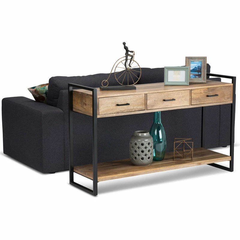 Bring a functional aesthetic to any room in your home with The Riverside Console Table. This Console Table has a Rustic Industrial Style that will add a stylish touch to your home. Standing at 32๏ฟฝ high and 54.5๏ฟฝ wide, this piece offers a great amount of room for you to add your own personal touch. From placing family photos or somewhere to lay your keys when you get home, the Riverside Console Table is a chance for you to show your unique style.