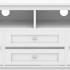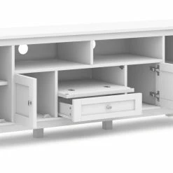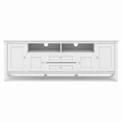 Now that 80 inch flat screen TVs are more affordable, you need to have one. To enjoy it fully, you will also need the perfect TV Stand to position your TV just right. Look no further. The Warm Shaker Extra Wide TV Stand is perfectly sized for TVs up to 80 inches. It has plenty of storage space for all your media and gaming devices. It has a large centrally located open area with two drawers as well as two enclosed spaces. The two large side storage cabinets open to one adjustable shelf each. The unit features cord management cut-outs for easy installation of TV and media components.