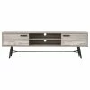 - Features two (2) functional bottom drawers with shaker style drawer front and metal drawer glides, two (2) side doors with storage and one (1) adjustable shelf