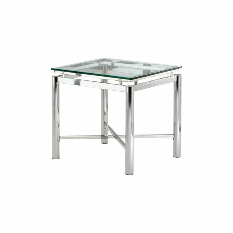 Brighten up your home with the Nova Collection. The cocktail table, end table, and sofa table are constructed of chrome metal bases and 12mm tempered glass tops. Each piece features X-shaped stretchers for added support and accent.