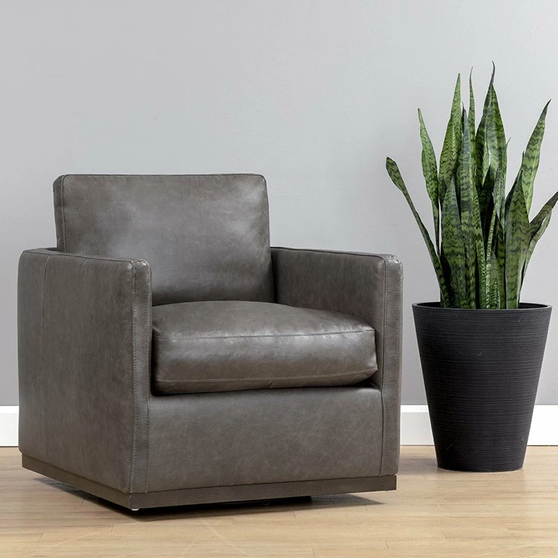 Brand new ⌛ Sunpan Modern Home Portman Swivel Lounge Chair, Marseille Concrete Leather ✔️