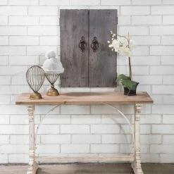 This French Country Style Console Table naturally adds style to any store, event or home. The piece features a natural wood top and weathered cream finish base creating a simple yet elegant piece. This table is a great fixture for stores and or events. Assembly instructions and hardware is included and can be accomplished by one person, but is easiest with two. Every piece screws into place using an Allen wrench.