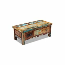 vidaXL Coffee Table Drawers Solid Reclaimed Wood 35.4″x17.7″x13.8″vidaXL Coffee Table Drawers Solid Reclaimed Wood 35.4″x17.7″x13.8″ – 243321, This antique-style wooden coffee table will make a unique addition to your room. Its solid wood construction makes it stable and secure to place drinks, fruit baskets, decorative items, etc. Equipped with two drawers, the coffee table can store a lot of things. This vintage coffee table can also be used as a couch table, a living room table, a drawer table, etc. Made of reclaimed wood, the drawer table is solid, durable and beautiful, and has the characteristics of different woods like sheesham, teak, palisander, mango wood, acacia, recycled wood, hard wood,etc. Every piece of this furniture is unique, and slightly different from the next. Signs of wear and visible grain structure give each piece its own history and a unique look. This drawer coffee table is fully handmade. Every step of the process is carried out with the greatest care, be it polishing, painting or lacquering. Important note: colors may vary from piece to piece, making each of our tables unique. The delivery is random.