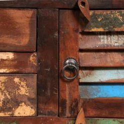 This antique-style wooden side cabinet, coming with 1 door and 2 drawers, offers you certain storage space and helps you to maintain your items in great order. You can also put a desk lamp, toiletries or some decorations on the sturdy top surface. This TV/Hi-Fi cabinet is made from reclaimed wood, which means that every piece of furniture is unique and slightly different from each other. The furniture made from reclaimed wood has characteristics of different woods like teakwood, acacia, mango wood, saal wood etc. Reclaimed wood is solid, stable, durable, and beautiful. The nail holes or clear-faced grains bring their history with them and invite another generation to permeate them with their own. Keeping this piece of furniture at home will show your concept of resource conservation, environment protection and sustainable development. Pure handmade craftsmanship adds the vintage spectacular style to the cabinet and feasts you with exotic flavour. Every process of recombining, polishing, painting and waxing is elaborately prepared. The antique side cabinet will surely be a perfect addition to your home! Important note: colors vary from piece to piece, making each of our cabinets unique; the delivery is random.