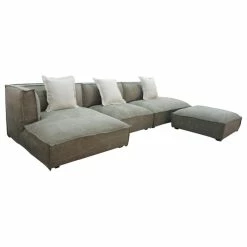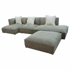 The Dania Sectional sure knows how to fill out a room. The oversized sofa is perfect for any farmhouse or industrial living room. The griege distressed fabric is perfectly rustic. This item includes three throw pillows and an ottoman, giving you a dual chaise look. This is the perfect modular sofa for you.