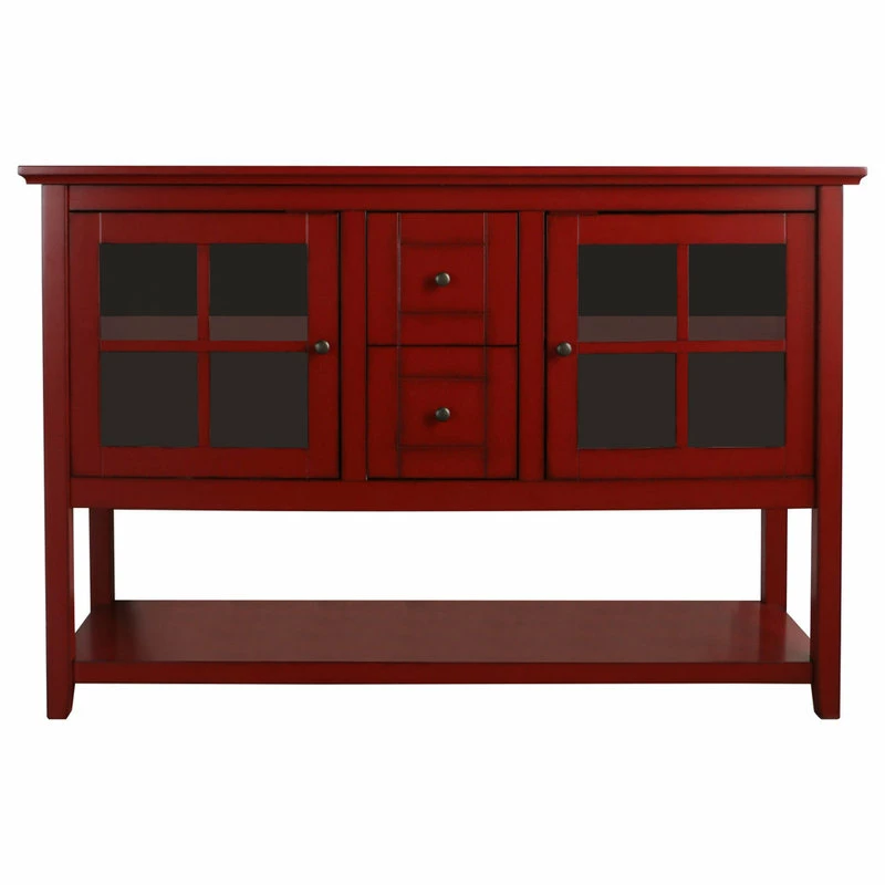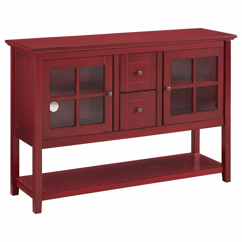 Bring your media display to new heights with the Media Console. Being able to accommodate most TVs up to 55″, this console blends seamlessly into any bedroom design, living space or game room. Two storage cabinets with adjustable shelving are perfect for managing your favorite movies, while two drawers are great for concealing TV remotes and game controllers. You can also utilize the bottom shelf to store your electronic devices or display decorative accessories. With its traditional shape and bright finish, the Media Console brings a sleek design to the forefront of your living space.