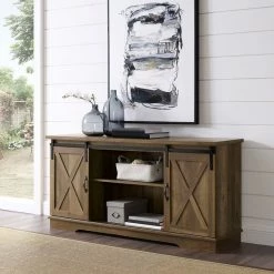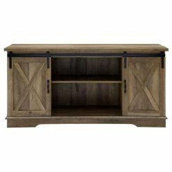 Include our Sliding Barn Door TV Console in your home to not only bring a rustic, country feel to your living area, but create ample storage for all of your media, accessories, and more. Constructed of high-grade MDF, this durable, long lasting stand supports most TVs up to 65″ and is the perfect solution for keep your living room looking neat while providing farmhouse charm.