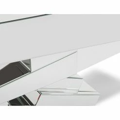 The Naxos Console Table is a unique combination of mirrored finish and sharp geometric angles. The reflective quality of this table gives it a personality all its own and is sure to be appreciated for years to come by those with discerning taste. The Naxos is a piece of artwork in itself and an ideal choice for showcasing a beautiful contemporary area rug.